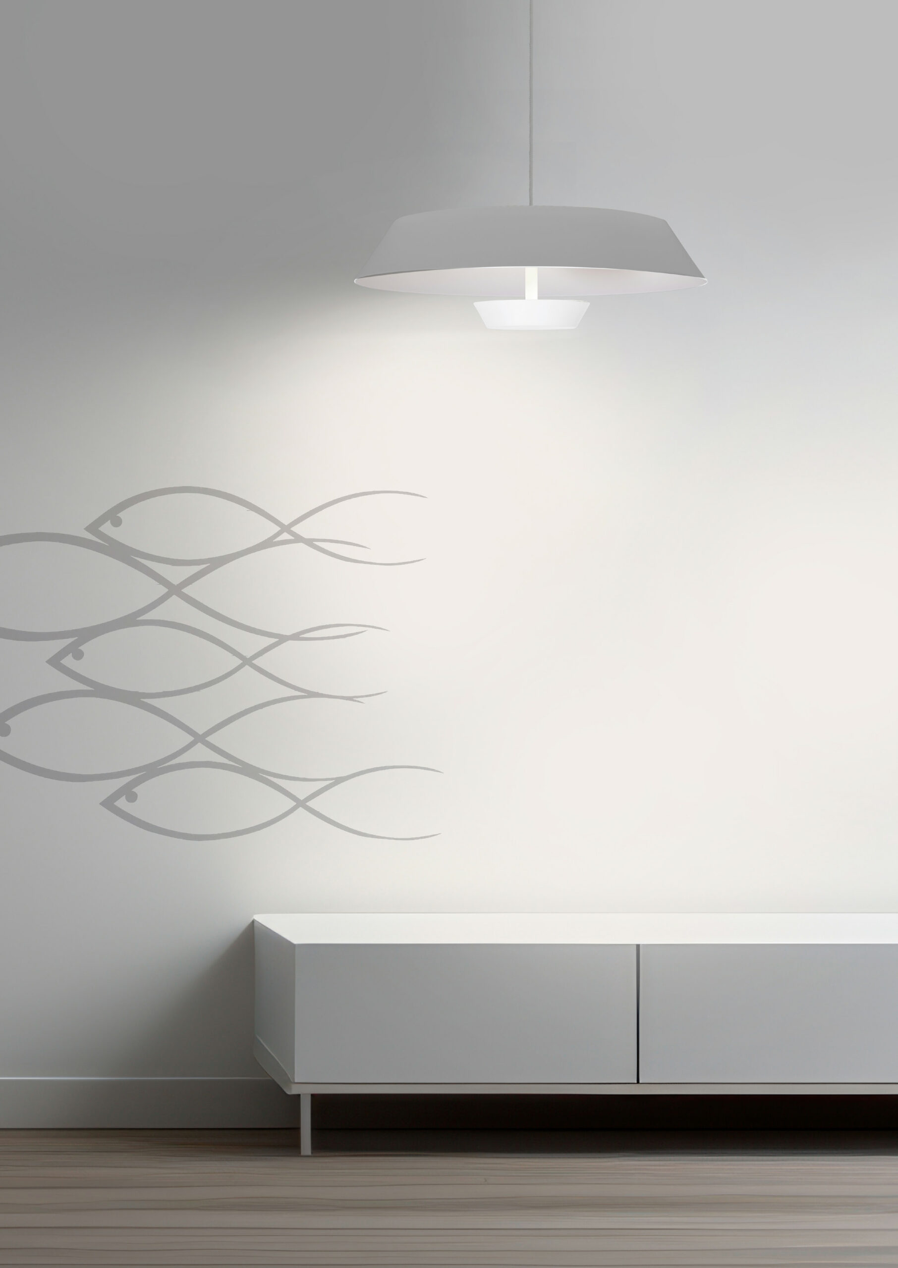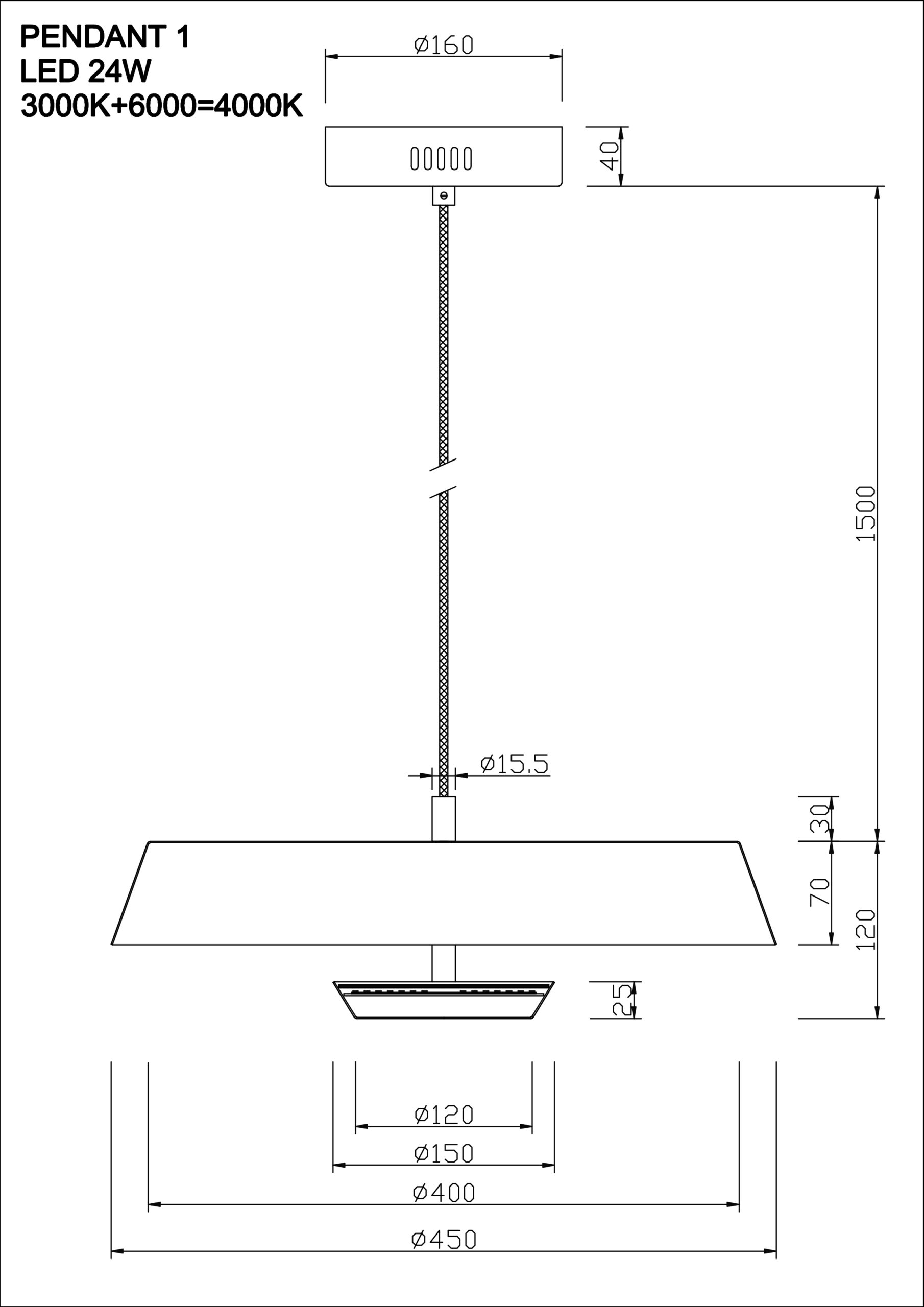 Este colgante está realizado en aluminio, material ligero, duradero y resistente a la corrosión. La iluminación es de 24w 3000k-4000k-6000k con 1920lm.