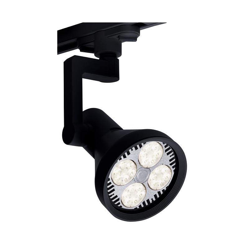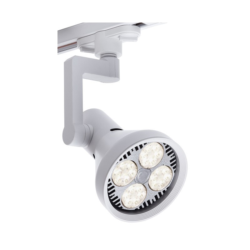 FOCO KORNAT para carril monofásico de la firma JUERIC disponible en blanco o negro. Utiliza portalámpara E27, PAR30 LED sería la indicada para este tipo de foco más abierto. La bombilla PAR30 no va incluida.