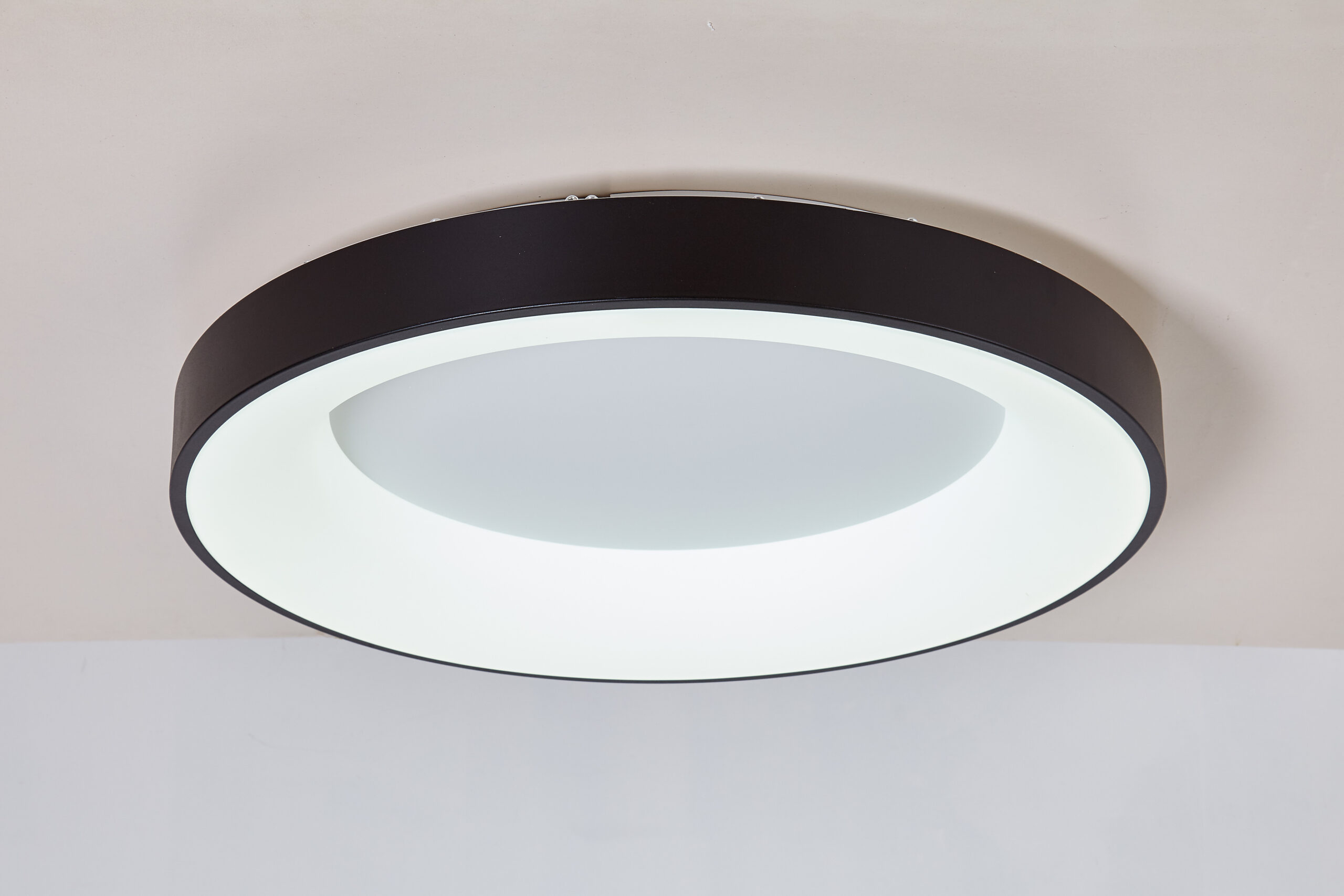 Luz de techo LEIDEN en metal blanco, negro o satinado oro. El plafón LEIDEN es una opción muy inteligente de iluminación, de alta calidad para cualquier espacio interior. Con una potencia de 100W y una luminosidad de 7500lm regulable de 3000k a 6000k con memoria de temperatura, brinda una iluminación espectacular y eficiente en cualquier estancia, dormitorios, cocinas, salas de espera, oficinas, pasillos, hoteles, restaurantes.